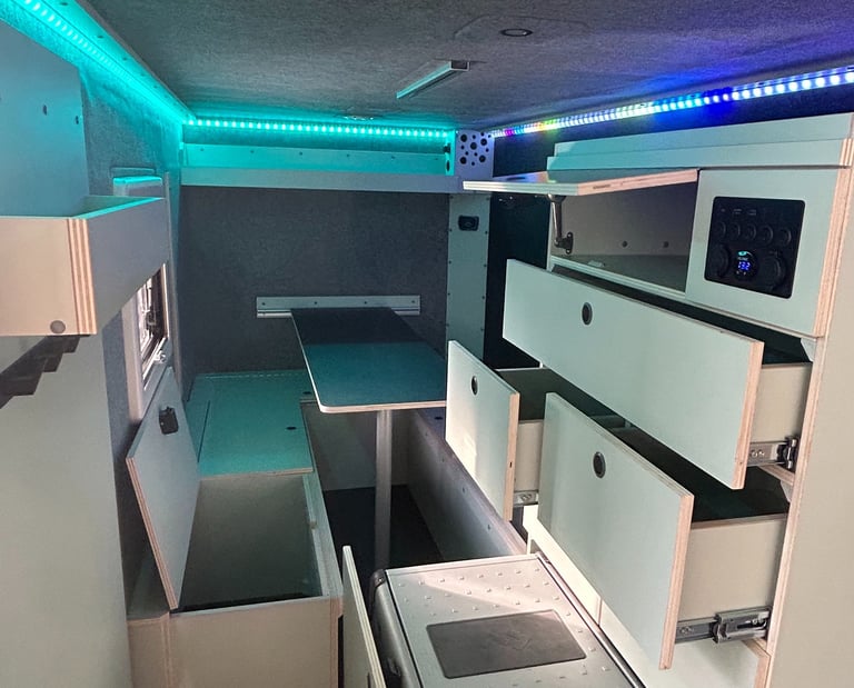 Zusammengefasst bedienen wir mit Leidenschaft die komplette Palette an Arbeiten für den Innenausbau von Campingfahrzeugen.